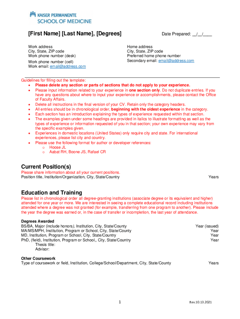 [First Name] [Last Name×, [Degrees] Work address City, State, ZIP code Work phone number (desk) Work phone number (cell) Work email: email×address.combat Prepared: __/__/___ Home address City, State,