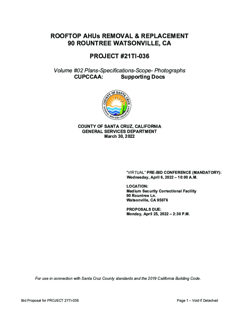 ROOFTOP Thus REMOVAL & REPLACEMENT 90 ROWNTREE WATSONVILLE, CA PROJECT #21TI036 Volume #02 PlansSpecificationsScope Photographs CUPOLA: Supporting Discount OF SANTA CRUZ, CALIFORNIA GENERAL SERVICES