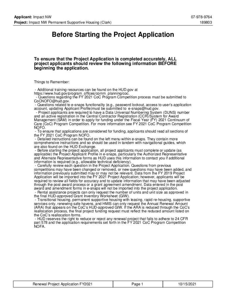 Applicant: Impact NW Project: Impact NW Permanent Supportive Housing (Clark)079789764 189803Before Starting the Project Application ensure that the Project Application is completed accurately, ALL