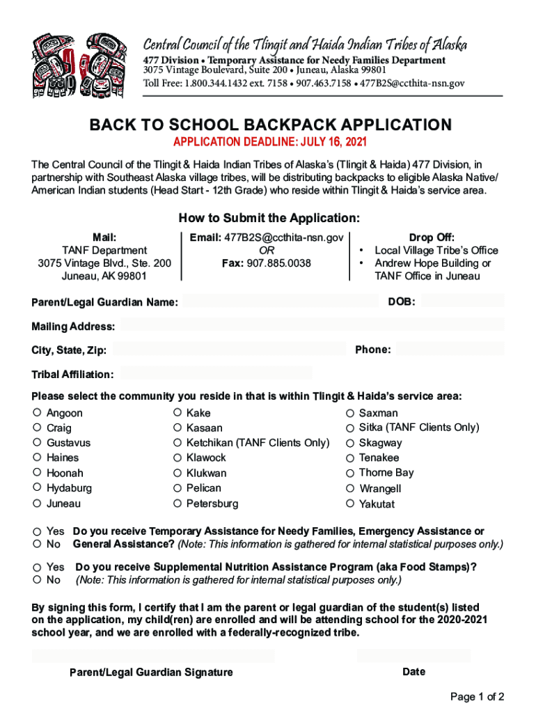 Central Council of the Tlingit and Haida Indian Tribes of Alaska 477 Division Temporary Assistance for Needy Families Department 3075 Vintage Boulevard, Suite 200 Juneau, Alaska 99801 Toll Free: 1.800.344.1432