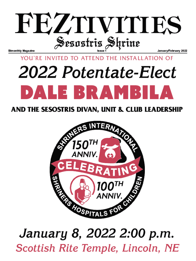Bimonthly MagazineIssue 1January/February 2022YOUR E IN V I T ED TO AT T END The Installation AT ION OF2022 PotentateElectDALE BRAMBILAAND THE SESOSTRIS DIVAN, UNIT & CLUB LEADERSHIP January 8, 2022
