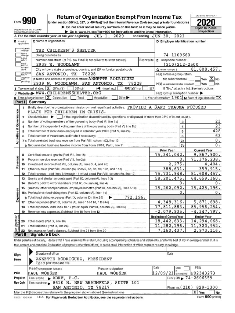 Form990Return of Organization Exempt From Income Tax OMB No. 15450047| Do not enter social security numbers on this form as it may be made public. Open to Public InspectionDepartment of the Treasury