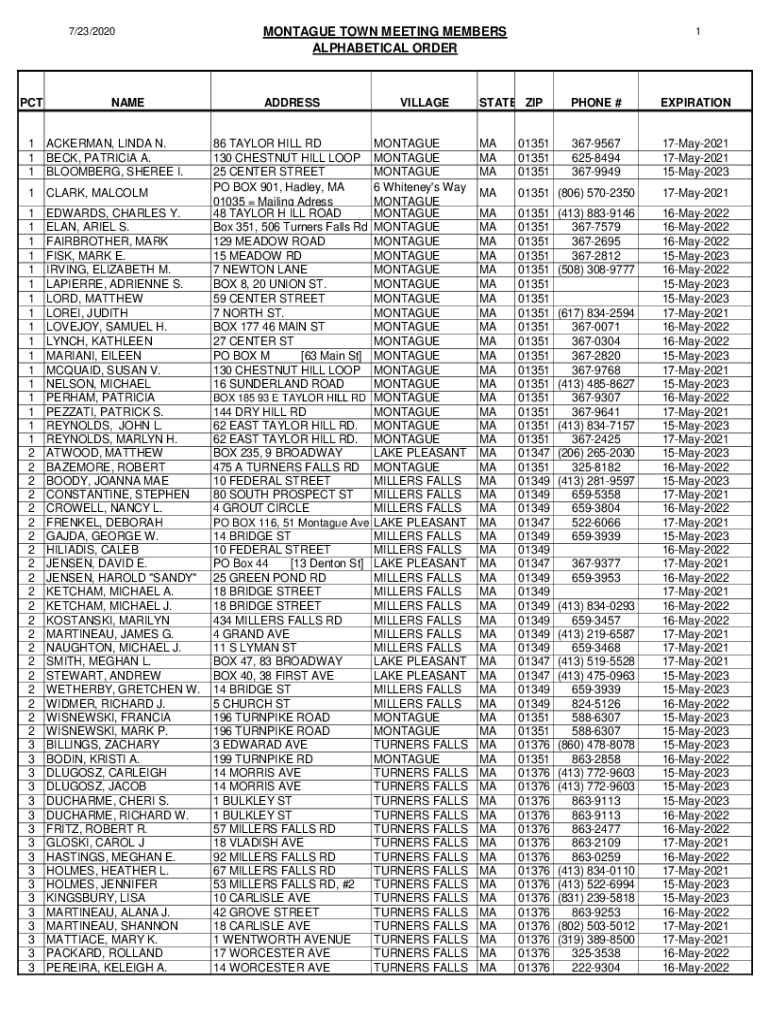 7/23/2020PCTNAME1 1 1ACKERMAN, LINDA N. BECK, PATRICIA A. BLOOMBERG, SHEREE I.1CLARK, MALCOLM1 1 1 1 1 1 1 1 1 1 1 1 1 1 1 1 1 2 2 2 2 2 2 2 2 2 2 2 2 2 2 2 2 2 2 2 2 2 3 3 3 3 3 3 3 3 3 3 3 3 3 3