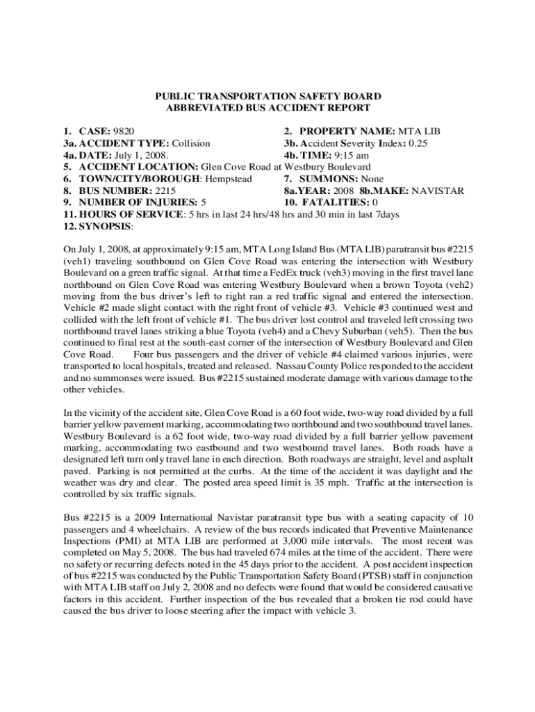 Get the free New York State Public Transportation Safety Board Accident ...