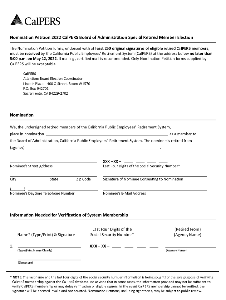 Get the free Notice of Election Released for CalPERS Board Special ...