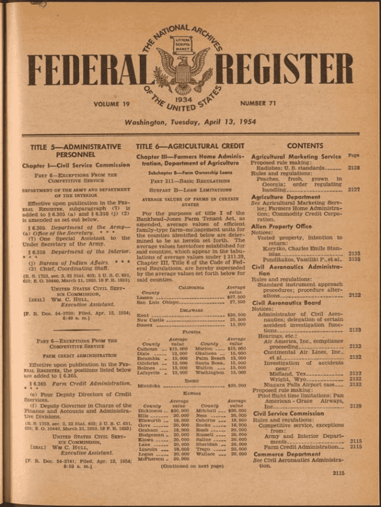 . I ITCBTP FEDERAL VOLUME 191934V.register NUMBER 71 N Lt t O Washington, Tuesday, April 13, 1954, TITLE 5 ADM INITIATIVE PERSONNEL Chapter I Civil Service Commission P an r t 6 E × c e p t ion s