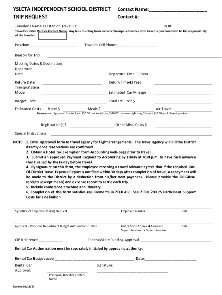 Edit your yisd trip request-effective 080116 form online