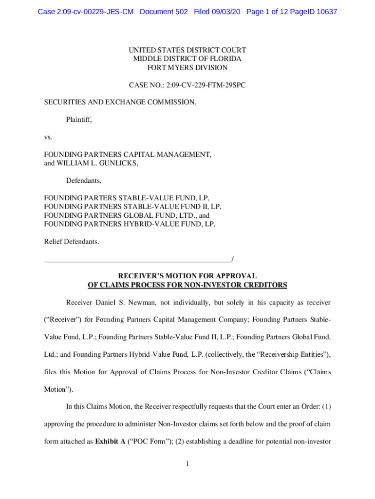 Case 2:09cv00229JESCM Document 502 Filed 09/03/20-Page 1 of 12 Paged 10637UNITED STATES DISTRICT COURT MIDDLE DISTRICT OF FLORIDA FORT MYERS DIVISION CASE NO.: 2:09CV229FTM29SPC SECURITIES AND EXCHANGE