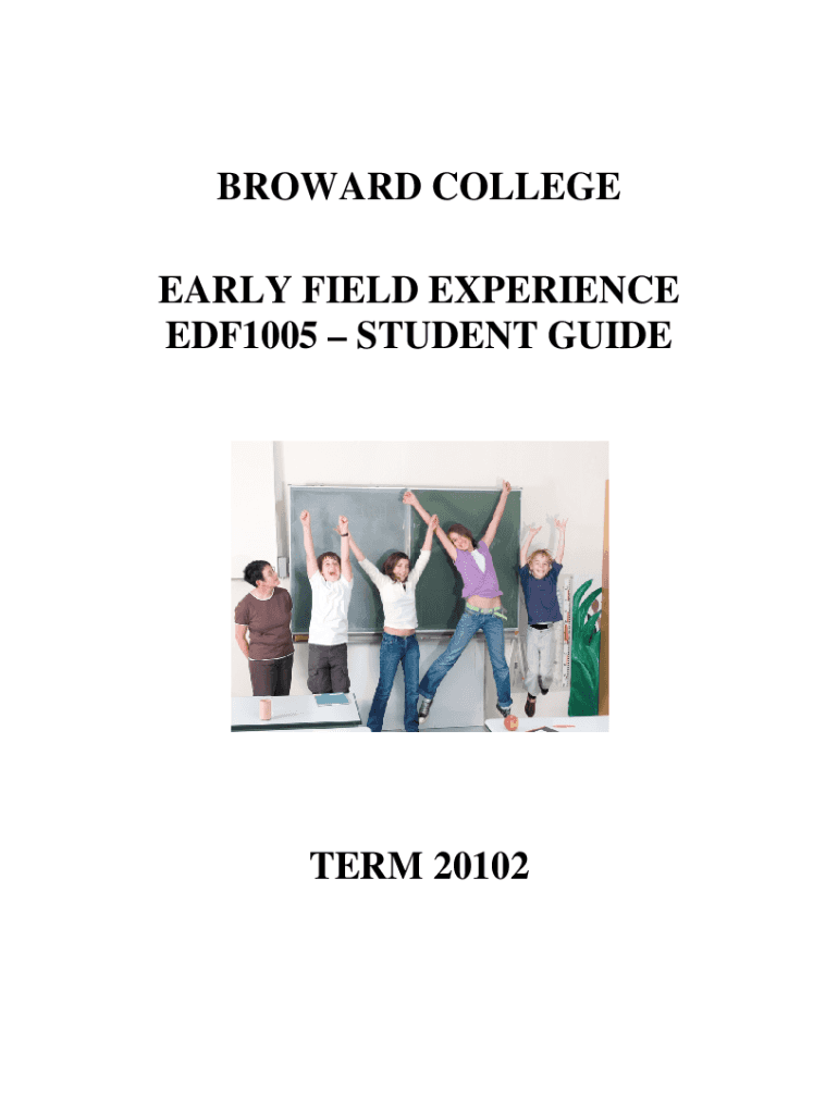 BROWARD COLLEGE EARLY FIELD EXPERIENCE EDF1005 STUDENT QUIETER 20102BROWARD COMMUNITY COLLEGE EARLY FIELD EXPERIENCE STUDENT GUIDE EDF1005 20102 Congratulations on your decision to pursue a career
