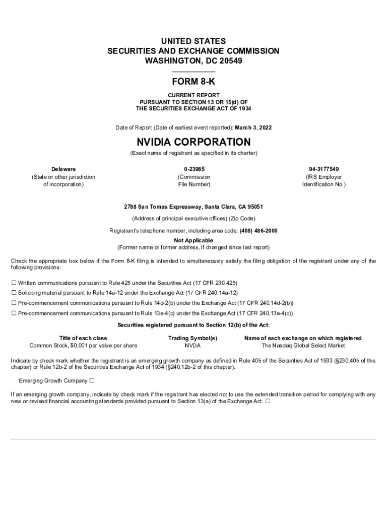 0001045810-22-000023 8-k refers to a form filed with the U.S. Securities and Exchange Commission (SEC) to announce major events or corporate changes that are important to shareholders.