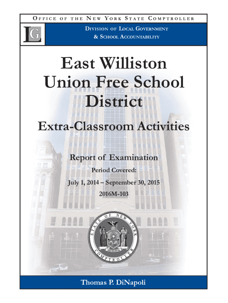 OFFICE THEN EW YORK STATE COMPTROLLER DI VISION OF LOCAL GOVERNMENT & SCHOOL ACCOUNTABILITY East Williston Union Free School District ExtraClassroom Activities Report of Examination Period Covered: