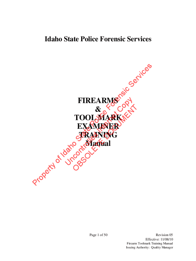 Of I'd U ah O NCO o S BS NT ta O ROL the LE P TE d In Olin D TER e F One o C t re U C n M o is EN by c Se T RVI CE Idaho State Police Forensic Services Pr over firearms & TOOL MARK EXAMINER TRAINING