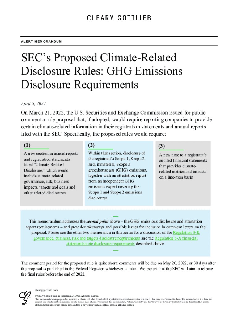 AL E R T M E M O R AN D U Secs Proposed ClimateRelated Disclosure Rules: GHG Emissions Disclosure Requirements April 5, 2022On March 21, 2022, the U.S. Securities and Exchange Commission issued for