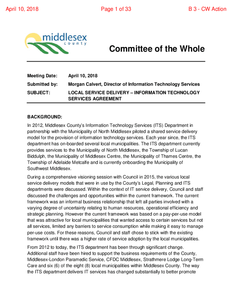 April 10, 2018Page 1 of 33B 3 CW ActionCommittee of the Whole Meeting Date:April 10, 2018Submitted by:Morgan Calvert, Director of Information Technology ServicesSUBJECT:LOCAL SERVICE DELIVERY INFORMATION
