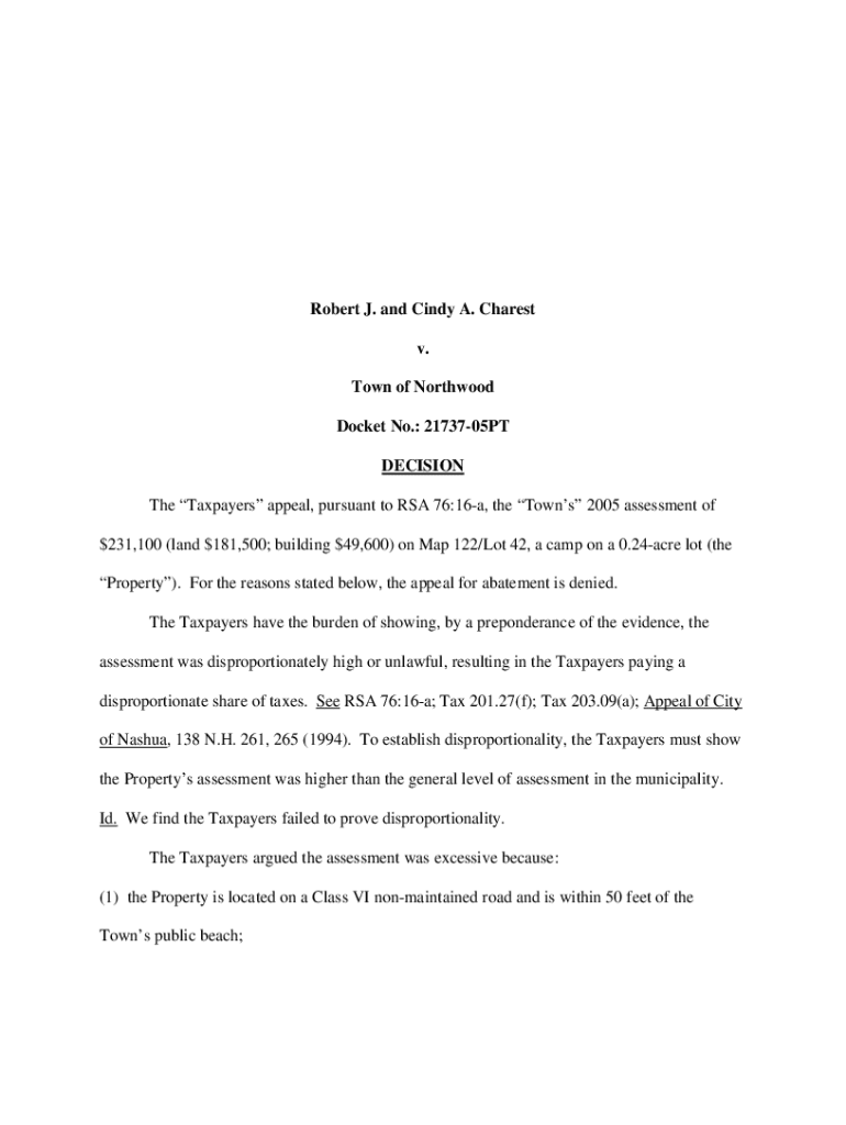 Get the free Robert J. and Cindy A. Charest v. Town of Northwood Docket No ...