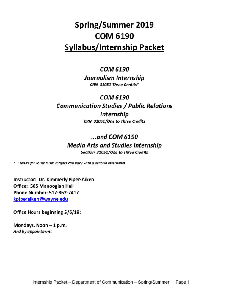 Get the free comm.wayne.edujournalismcom6190internshipsyllabusSpring-Summer 2018 COM 6190 Syllabu...