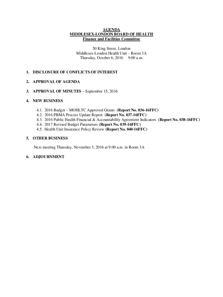 Get the free AGENDA MIDDLESEX-LONDON BOARD OF HEALTH Finance ...