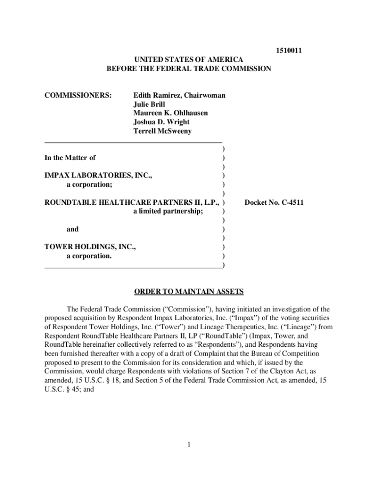 1510011 UNITED STATES OF AMERICA BEFORE THE FEDERAL TRADE COMMISSIONCOMMISSIONERS:Edith Ramirez, Chairwoman Julie Brill Maureen K. Oberhausen Joshua D. Wright Terrell McQueen ___) In the Matter of))