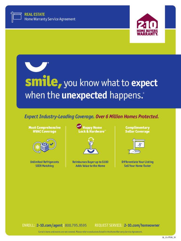 REAL ESTATE Home Warranty Service Agreement smile, you know what to expect when the unexpected happens. Expect Industry-leading Coverage. Over 6 Million Homes Protected. Most Comprehensive HVAC CoverageUnlimited