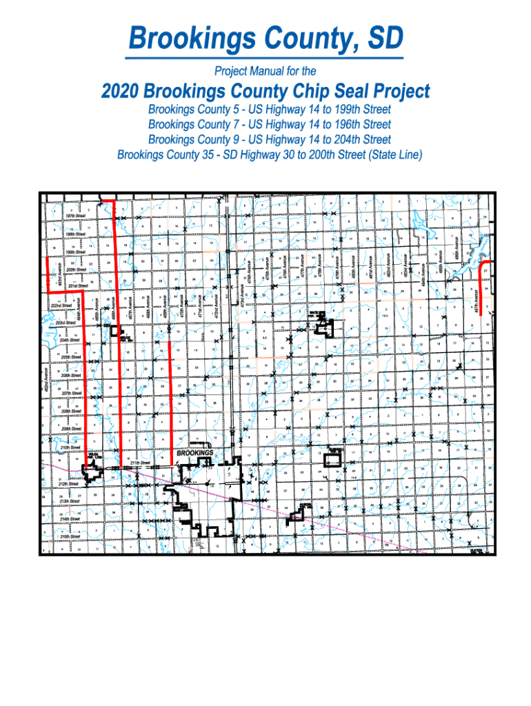 Brookings County, SD Project Manual for the2020 Brookings County Chip Seal Project Brookings County 5 US Highway 14 to 199th Street Brookings County 7 US Highway 14 to 196th Street Brookings County