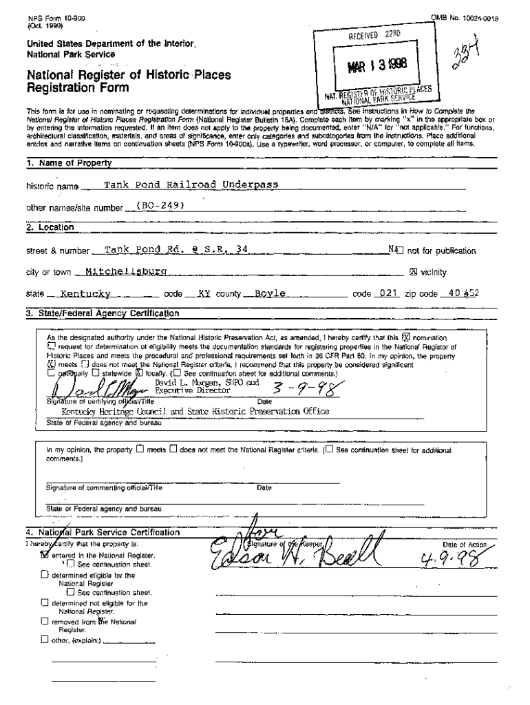 OMB No. 100240018NPS Form 10900 (Oct. 1990)United States Department of the interior. National Park ServiceNational Register of Historic Places Registration Form This form is for use in nominating