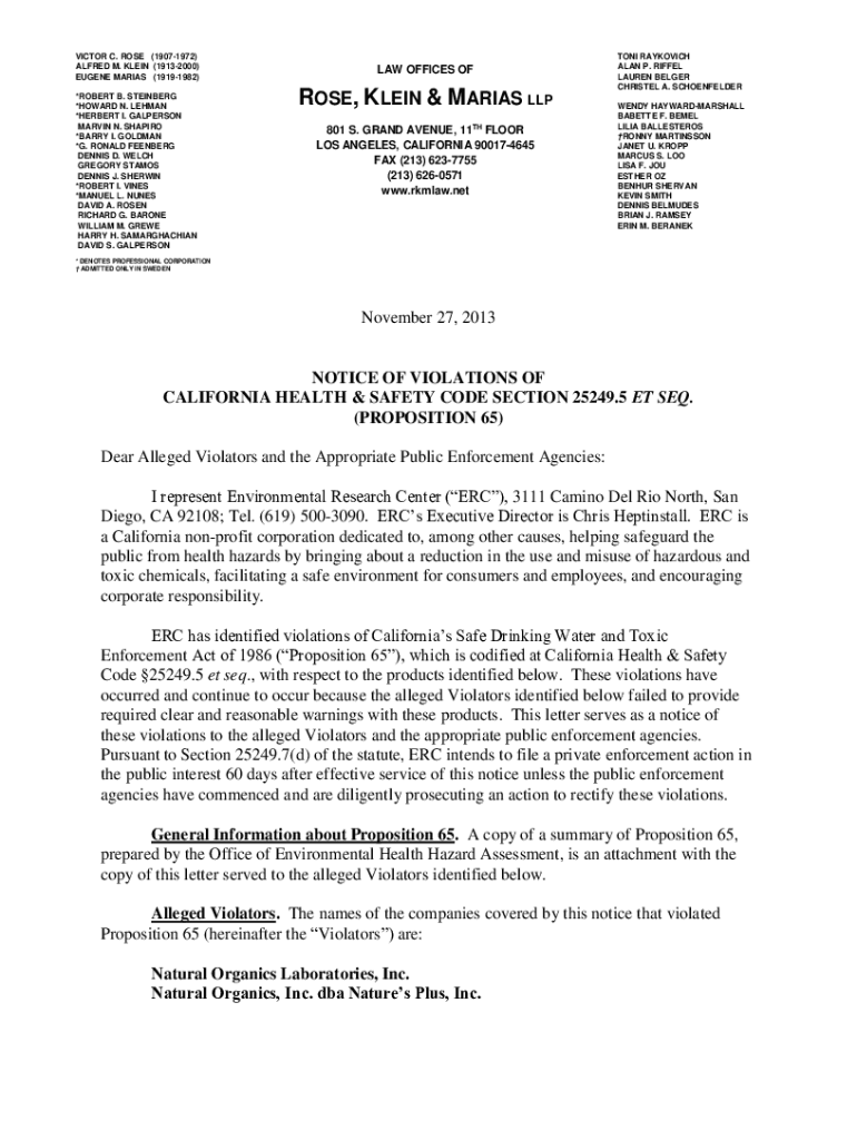 VICTOR C. ROSE (19071972) ALFRED M. KLEIN (19132000) EUGENE MARIA (19191982) *ROBERT B. STEINBERG *HOWARD N. LEHMAN *HERBERT I. LAYPERSON MARVIN N. SHAPIRO *BARRY I. GOLDMAN *G. RONALD FEINBERG DENNIS