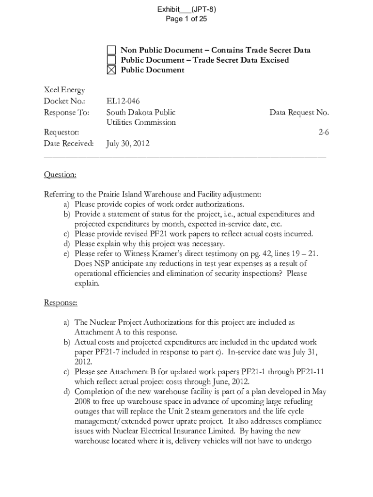 Exhibit___(JPT8) Page 1 of 25Non Public Document Contains Trade Secret Data Public Document Trade Secret Data Excised Public Document Excel Energy Docket No.: Response To:EL12046 South Dakota Public