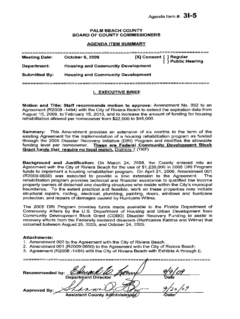 Agenda Item #:315PALM BEACH COUNTY BOARD OF COUNTY COMMISSIONERS AGENDA ITEM SUMMARY Department:[X] Consent [ ] Regular [ ] Public Hearing Housing and Community DevelopmentSubmitted By:Housing and