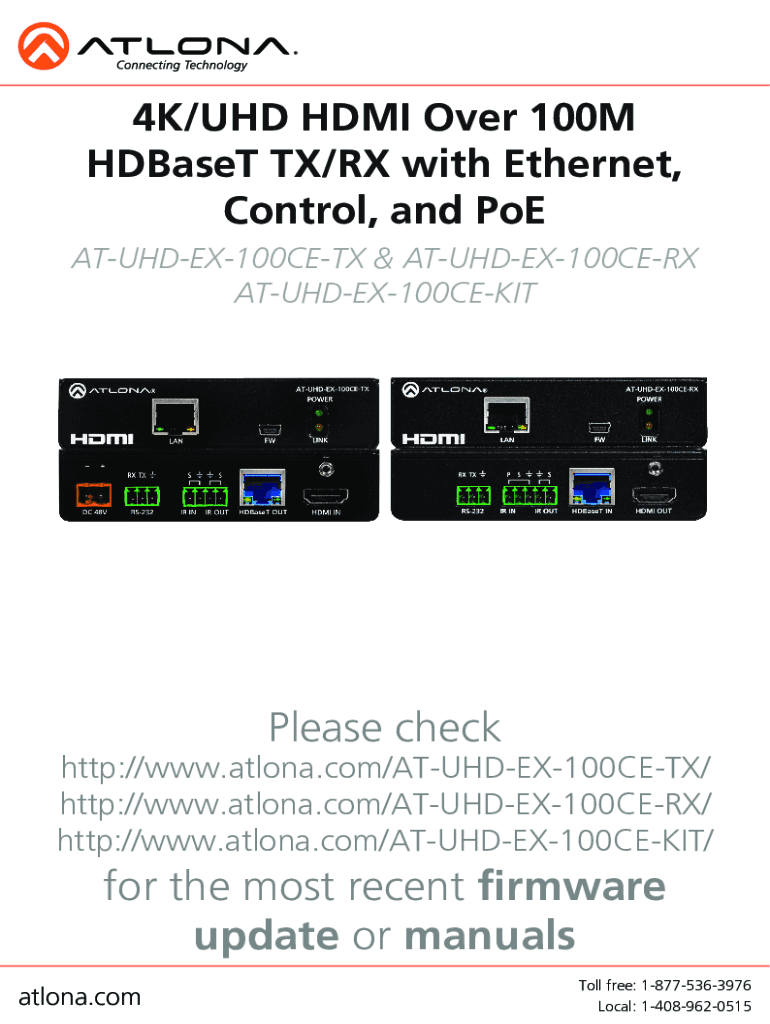 4K/UHD HDMI Over 100M HBase TX/RX with Ethernet, Control, and POE ATUHDEX100CETX & ATUHDEX100CERX ATUHDEX100CEKITPlease checkout://www.atlona.com/ATUHDEX100CETX/ http://www.atlona.com/ATUHDEX100CERX/