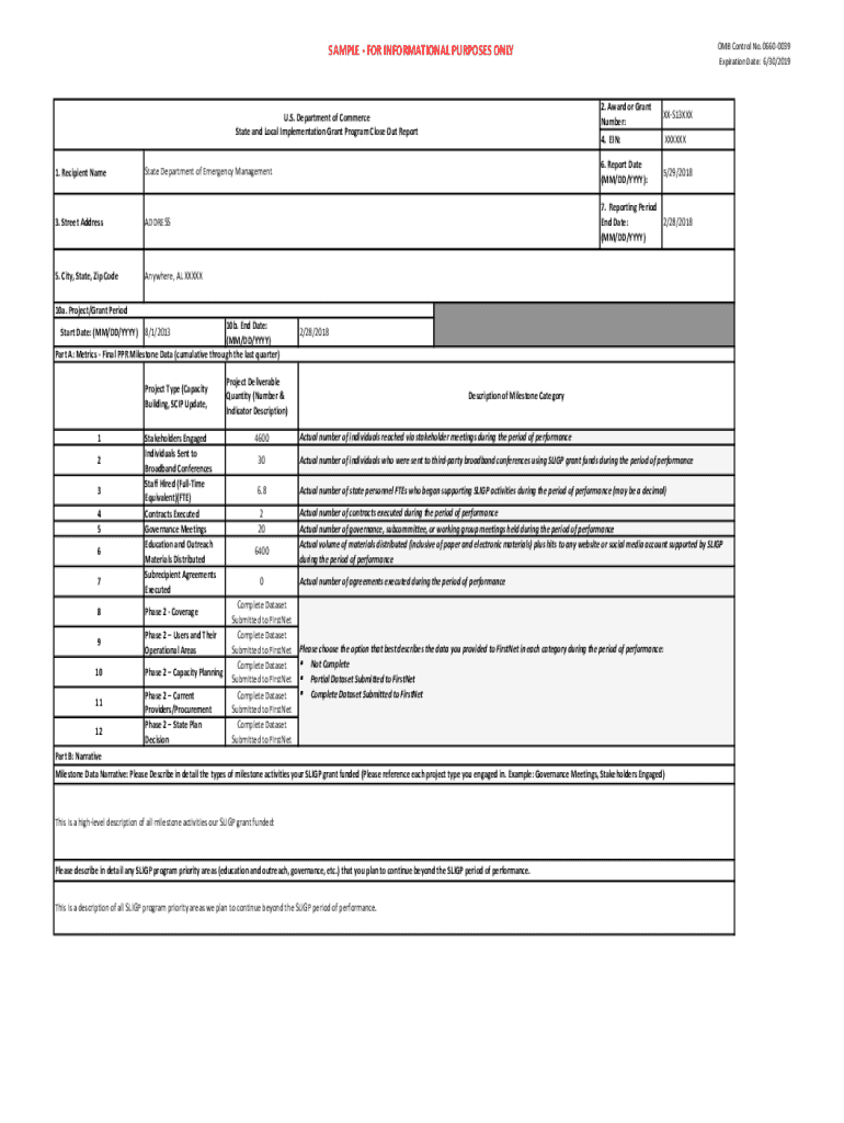 OMBControlNo.06600039 ExpirationDate:6/30/2019SAMPLEFORINFORMATIONALPURPOSESONLY2. AwardorGrant U.S. DepartmentofCommerce Number: StateandLocalImplementationGrantProgramCloseOutRep.
