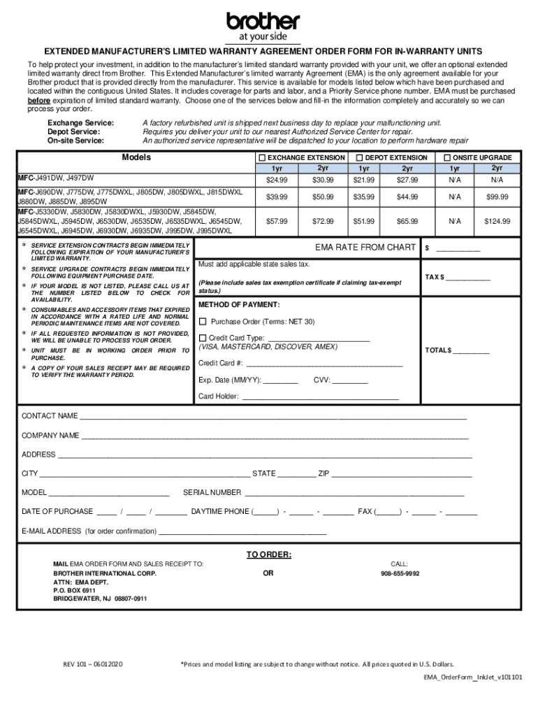 Get the free www.brother-usa.com-mediaEXTENDED MANUFACTURERS LIMITED WARRANTY AGREEMENT ORDER FOR...