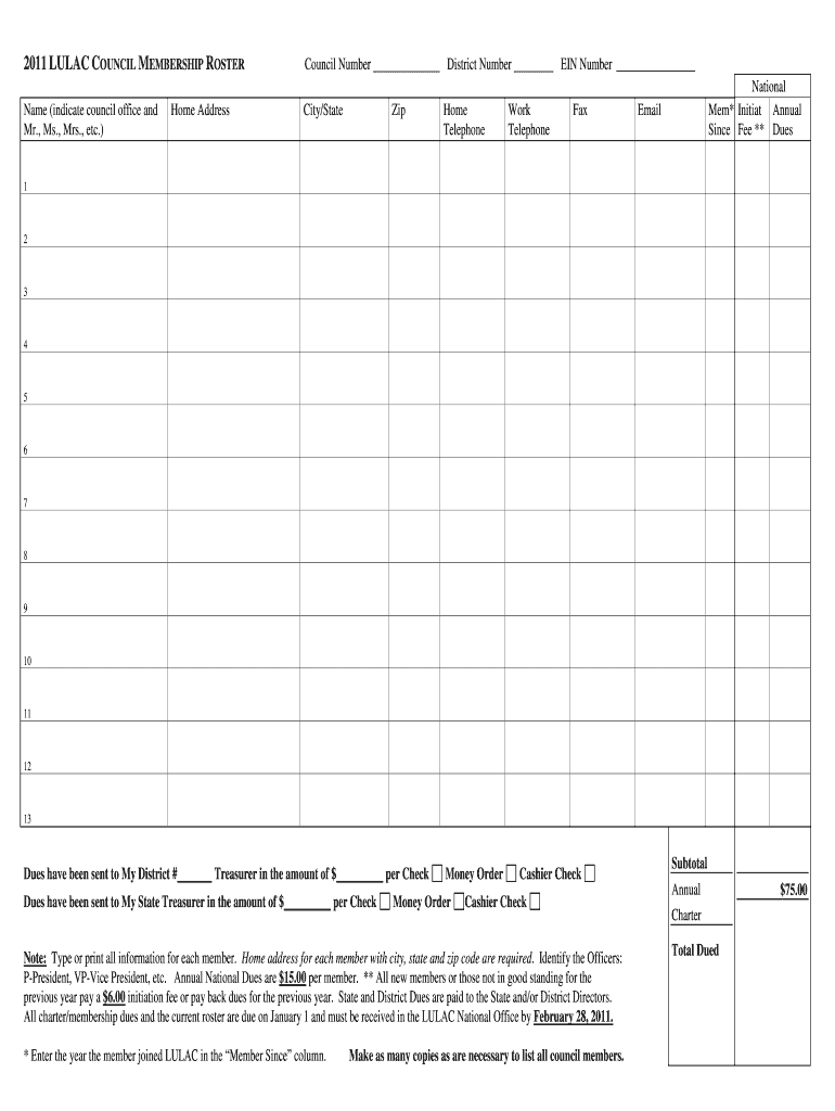 Get the free 2011 LULAC Council Membership Roster