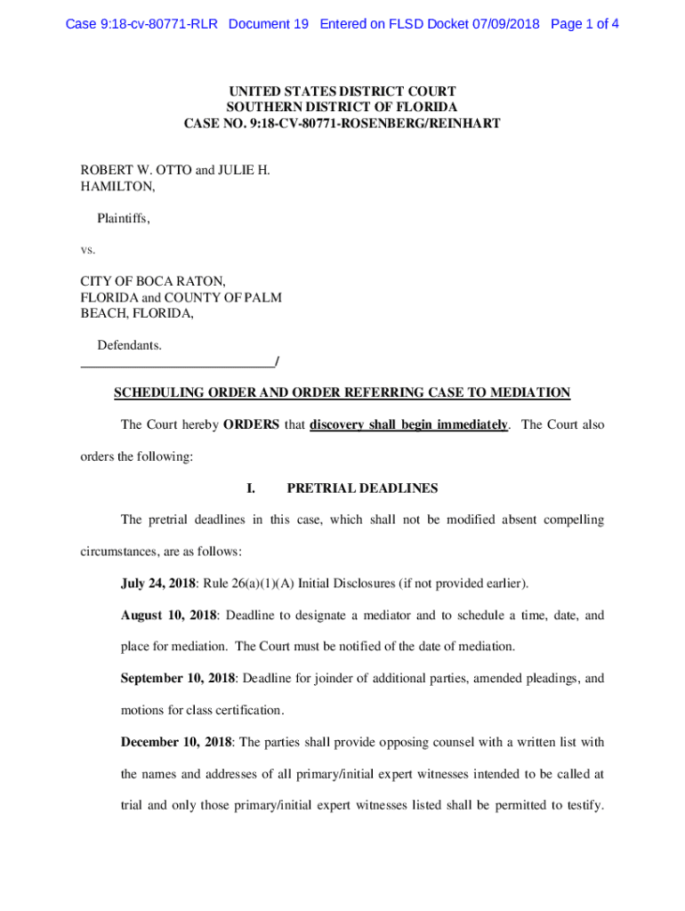 Case 9:18cv80771RLR Document 19 Entered on FLED Docket 07/09/2018-Page 1 of 4UNITED STATES DISTRICT COURT SOUTHERN DISTRICT OF FLORIDA CASE NO. 9:18CV80771ROSENBERG/REINHARTROBERT W. OTTO and JULIE