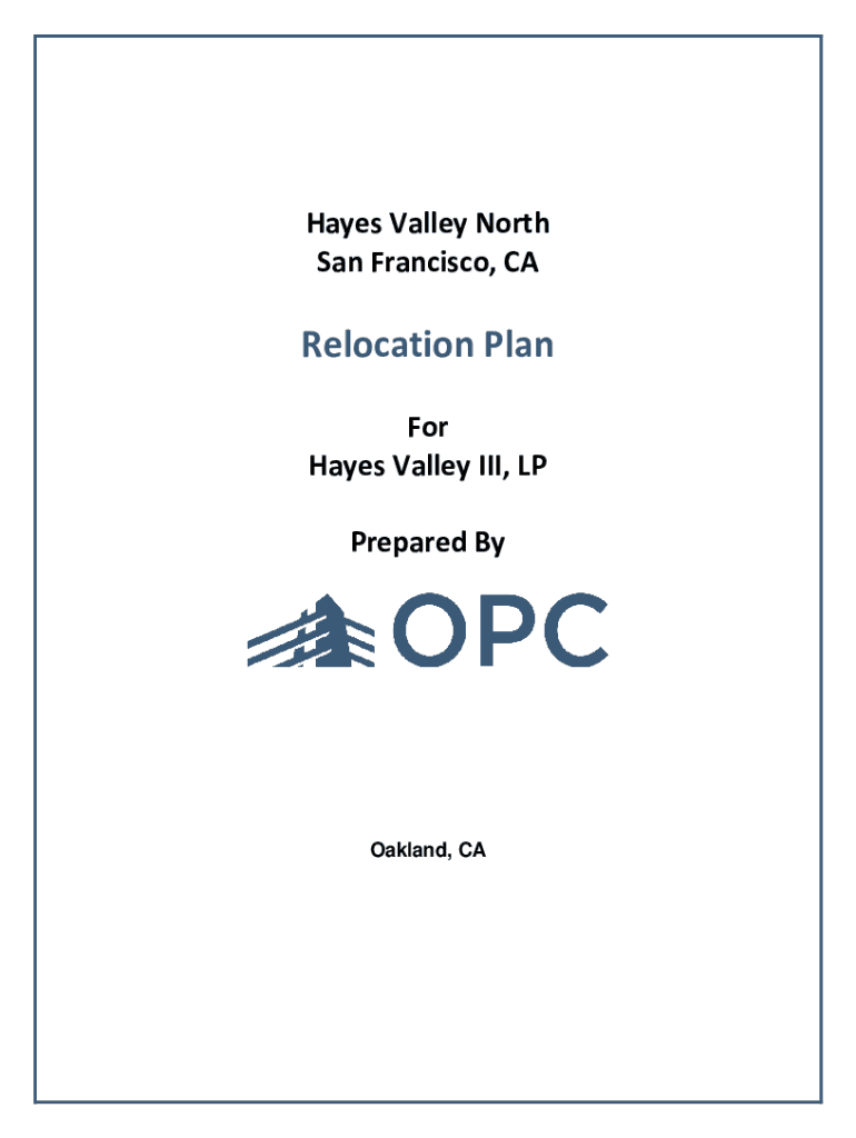Hayes Valley North San Francisco, Care location Plan For Hayes Valley III, LP Prepared By Oakland, CA Hayes Valley North Relocation Plan Page|2Table of ContentsIntroduction ...........................................................................