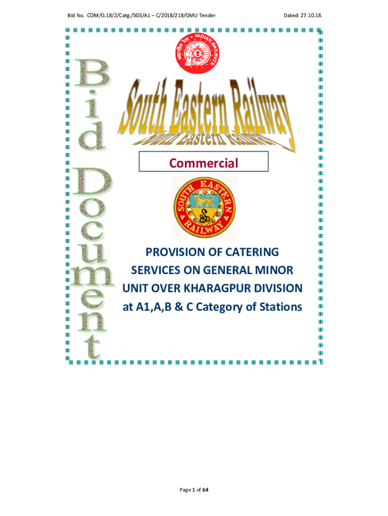 Bid No. COM/G.18/2/Cat./SGS/A1 C/2018/218/GMU Generated: 27.10.18. Commercial DepartmentPROVISION OF CATERING SERVICES ON GENERAL MINOR UNIT OVER BHAGALPUR DIVISION at A1,A, B & C Category of Stations