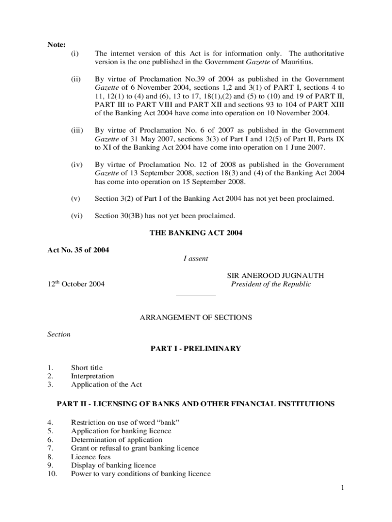 Note: (i)The internet version of this Act is for information only. The authoritative version is the one published in the Government Gazette of Mauritius.(ii)By virtue of Proclamation No.39 of 2004