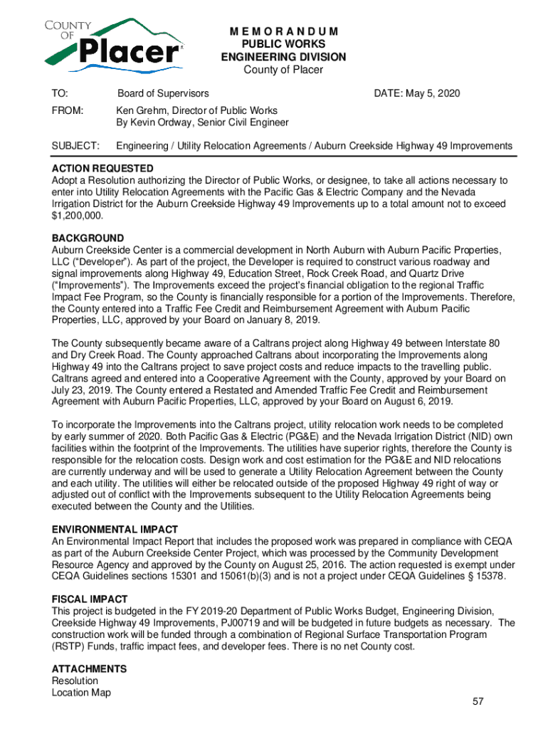 Get the free www.placer.ca.govDocumentCenterViewMEMORANDUM PUBLIC WORKS AND FACILITIES ENGINEERIN...