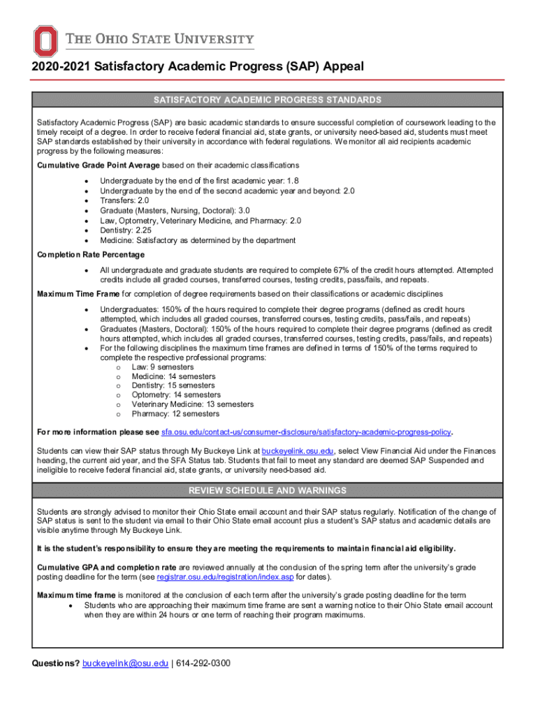 20202021 Satisfactory Academic Progress (SAP) Appeal SATISFACTORY ACADEMIC PROGRESS STANDARDS Satisfactory Academic Progress (SAP) are basic academic standards to ensure successful completion of coursework