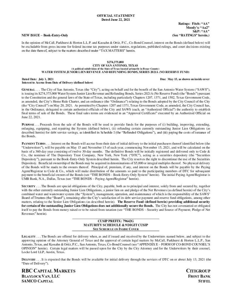 OFFICIAL STATEMENT Dated June 22, 2021, Ratings: Fitch: AA Moody's: Aa2 S&P: AA (See RATINGS herein.)NEW ISSUE BookEntryOnlyIn the opinion of McCall, Pankhurst & Horton L.L.P. and Kansan & Ortiz,