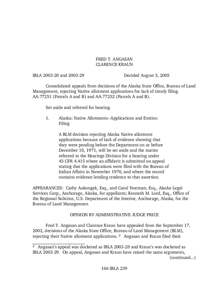 FRED T. ANDAMAN CLARENCE KRAUT BLA 200328 and 200329Decided August 3, 2005Consolidated appeals from decisions of the Alaska State Office, Bureau of Land Management, rejecting Native allotment applications