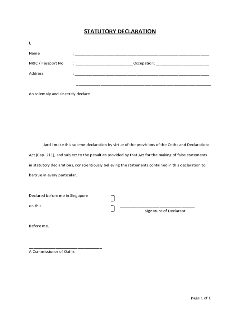 Get the free Standard SD - Blank.pdf - STATUTORY DECLARATION INAME OF ...
