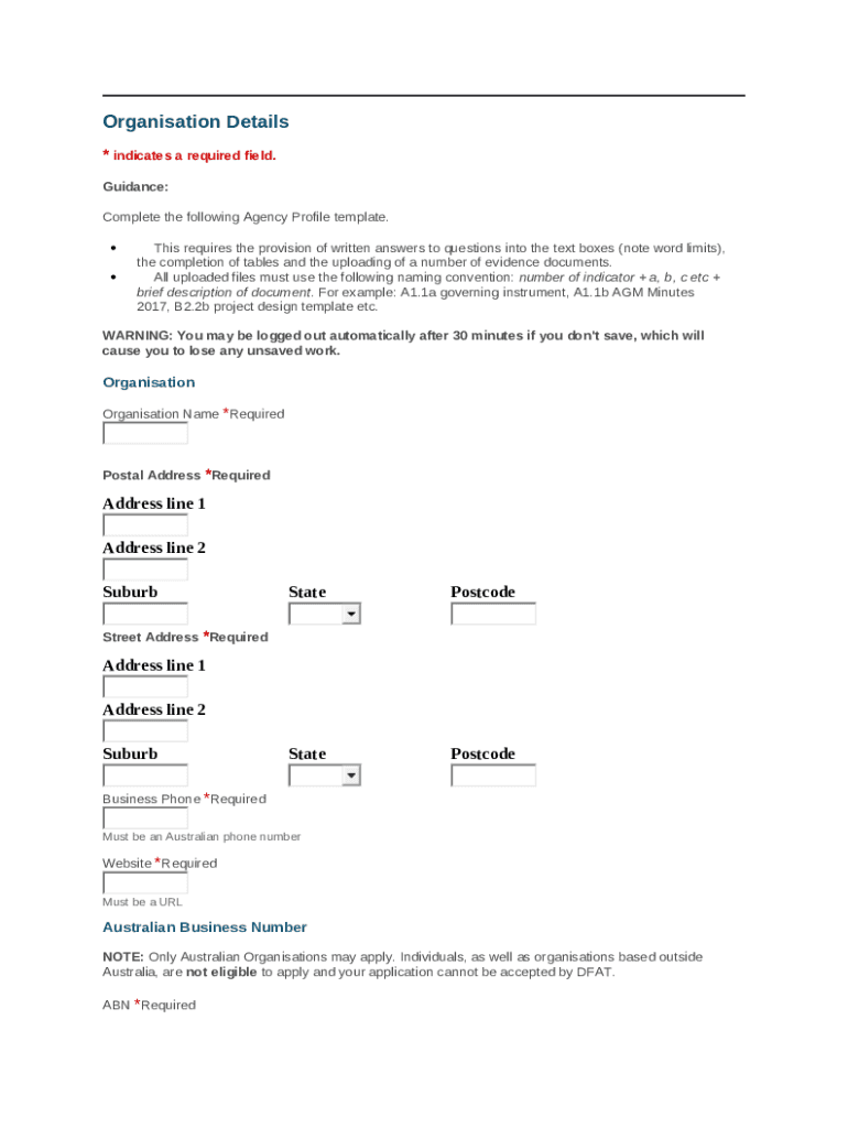 Instructions for the form www.dfat.gov.ausitesdefaultANGO Agency Profile Template - dfat.gov.au