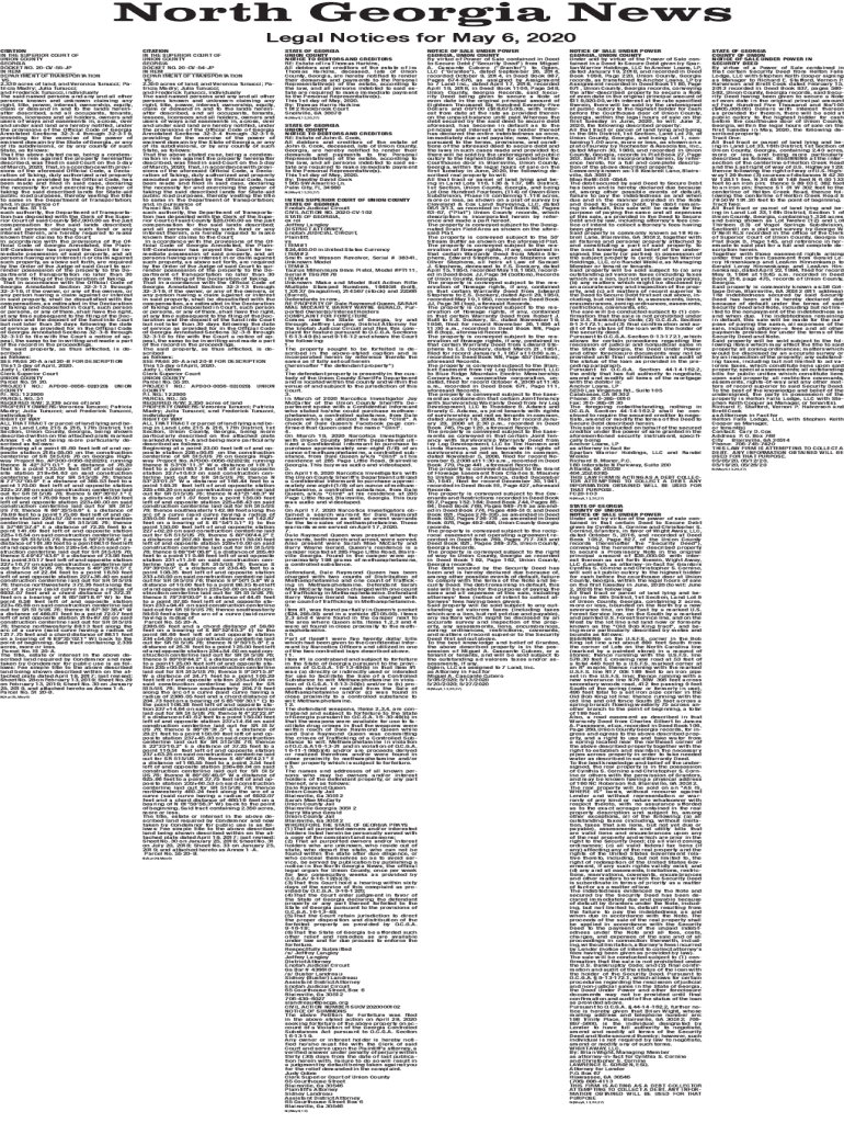 North Georgia News Legal Notices for of May 6, 2020, Official Legal Organ Union County Legal Notices for September 2008 Legal Notices for June 17,10, 2009CITATION CITATION IN THE SUPERIOR COURT OF