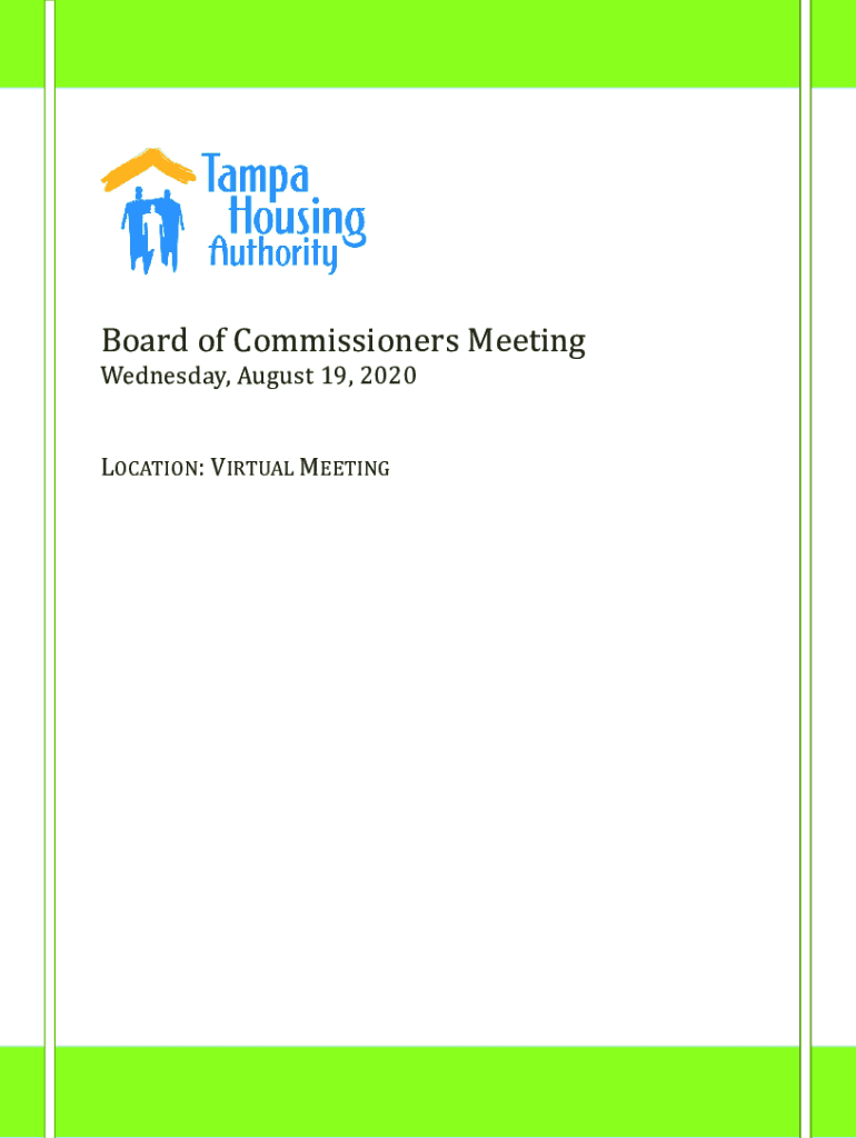 Board of Commissioners Meeting Wednesday, August 19, 2020, LOCATION: VIRTUAL MEETINGBOARD OF COMMISSIONERSBoard of Commissioners Meeting Wednesday, August 19, 2020James A. Clear Chair Beretta Salter