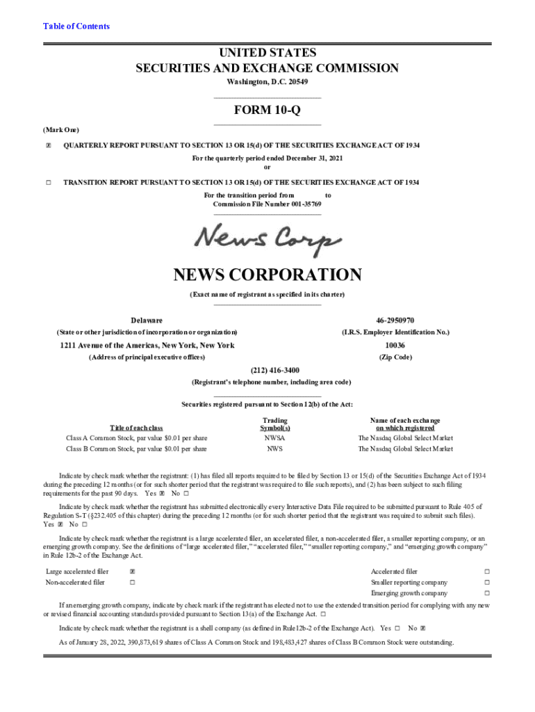 News Corporation Reports Second is not the form you're looking for?Search for another form here.