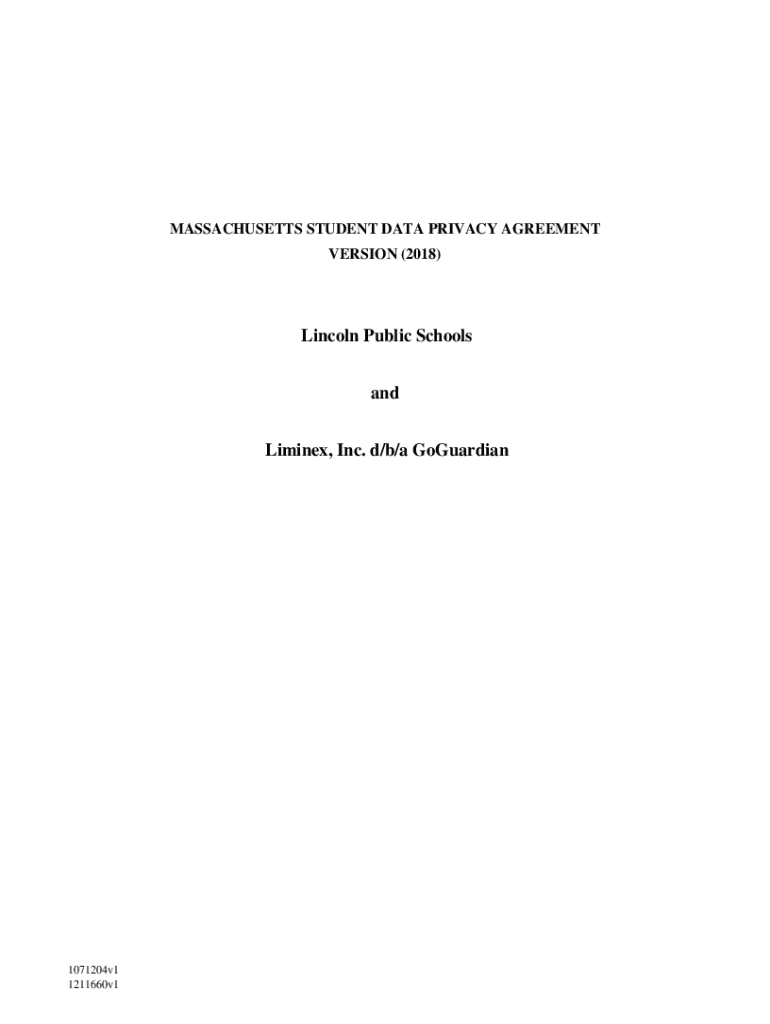 MASSACHUSETTS STUDENT DATA PRIVACY AGREEMENT VERSION (2018)Lincoln Public Schools and Limited, Inc. d/b/a GoGuardian1071204v1 1211660v1This Massachusetts Student Data Privacy Agreement (DPA) is entered