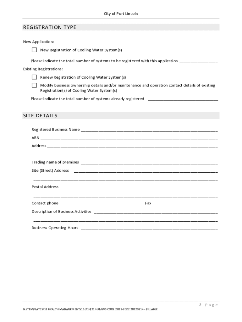 Get the free www.portlincoln.sa.gov.au data assetsCOOL WATER SYSTEM REGISTRATION FORM - portlinco...