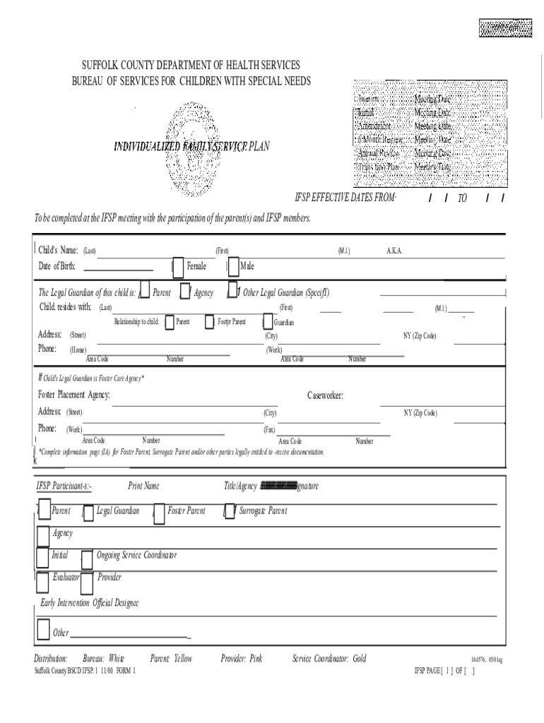 SUFFOLK COUNTY DEPARTMENT OF HEALTH SERVICES BUREAU OF SERVICES FOR CHILDREN WITH SPECIAL NEEDS PLAN ISP EFFECTIVE DATES FROMIITOIITo be completed at the ISP meeting with the participation of the
