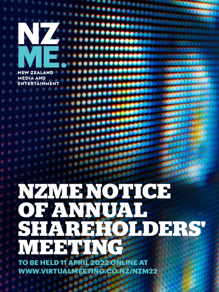 NAME NOTICE OF ANNUAL SHAREHOLDERS\' MEETING TO BE HELD 11 APRIL 2022 ONLINE AT WWW.VIRTUALMEETING.CO.NZ/NZM222 NEW ZEALAND MEDIA AND ENTERTAINMENTNZME NOTICE OF ANNUAL SHAREHOLDERS\' MEETING Dear