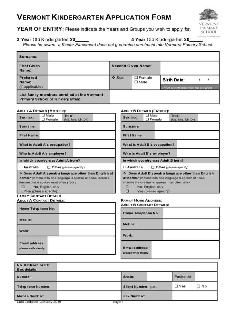 VERMONT KINDERGARTEN APPLICATION FORM YEAR OF ENTRY: Please indicate the Years and Groups you wish to apply for. 3-Year-Old Kindergarten 20___4-Year-Old Kindergarten 20___Please be aware, a Kinder